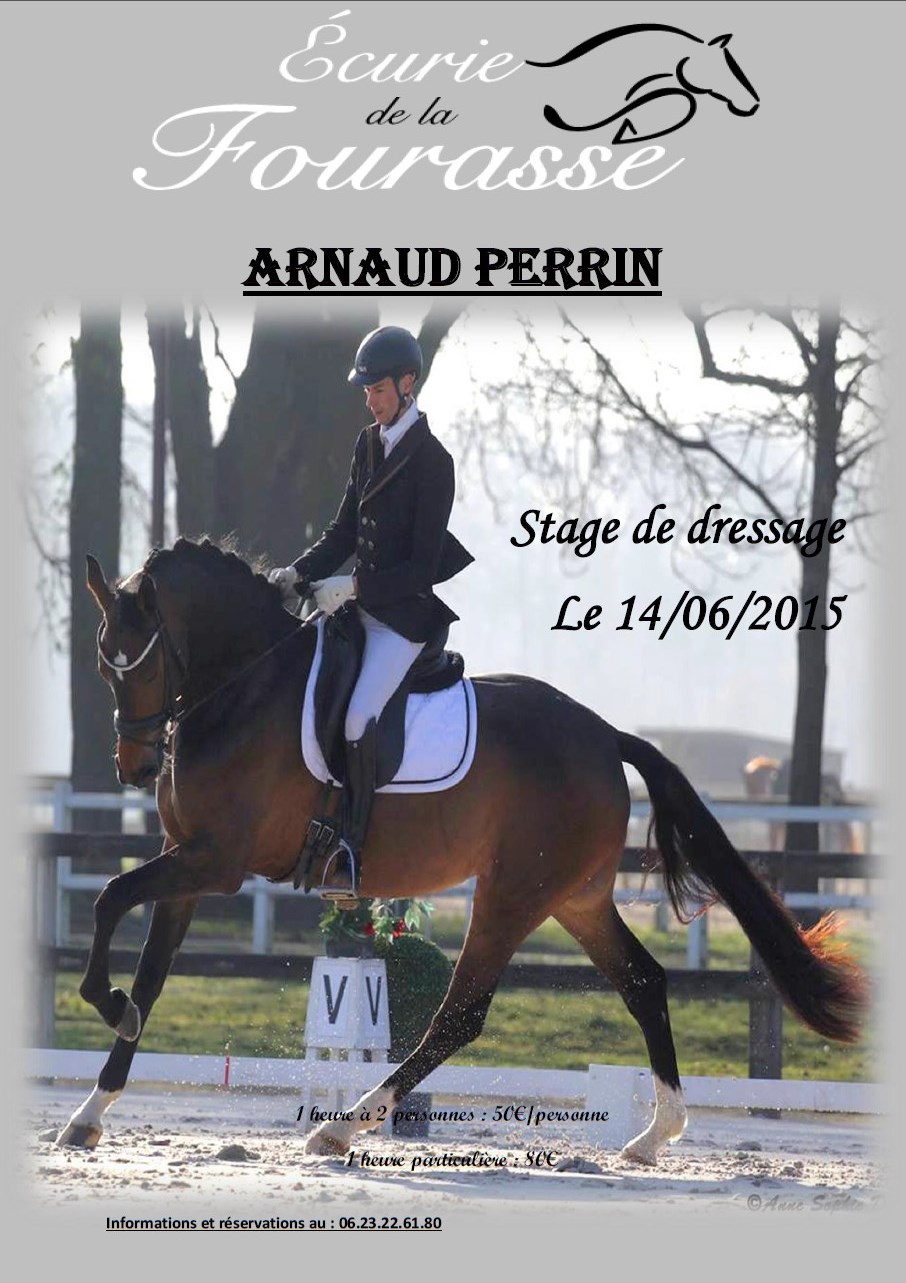 14/06/2015Stage de Dressage avec Arnaud PERRINEcurie la fourasse, LUNEVILLEProfitez des stages de dressage avec le cavalier professionnel Arnaud PERRIN !